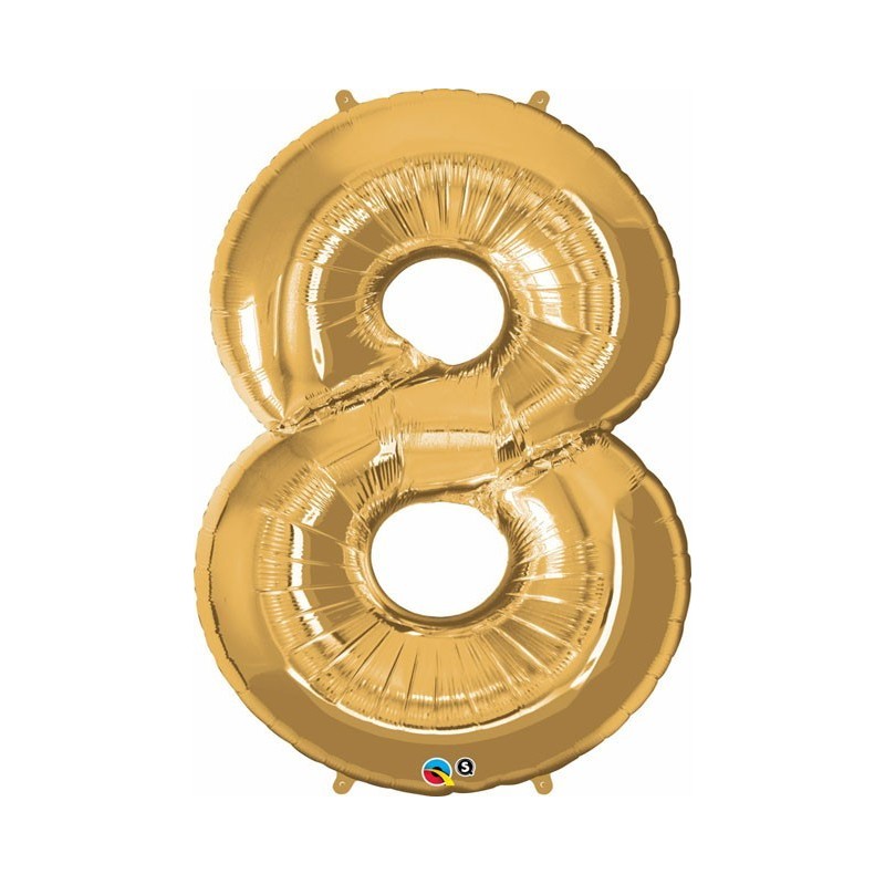 Globos de foil Jumbo de 34" (86cm) x 42" (107Cm) Número "8" Oro.